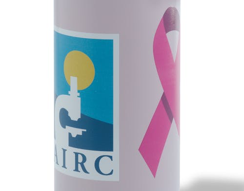 La borraccia è un pensiero molto gradito: pratica e leggera da portare al lavoro o in viaggio, riprende il motivo del Nastro Rosa AIRC incompleto... ma tu puoi aiutarci a completarlo, e raggiungere così un importante traguardo. Sostieni con noi i ricercatori impegnati nella lotta al tumore al seno!