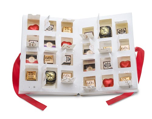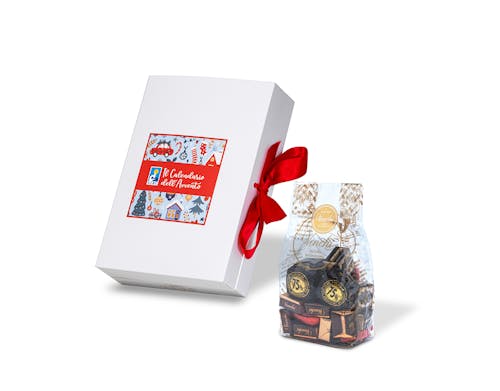 Riempi il Calendario dell'Avvento con 24 cioccolatini Venchi assortiti! Nelle 24 caselle potrai inserire i 24 deliziosi cioccolatini presenti nel sacchetto, assortiti nelle varie specialità Venchi. Un pensiero che piacerà a grandi e piccoli, per un dolce dono di Natale che parla di speranza.