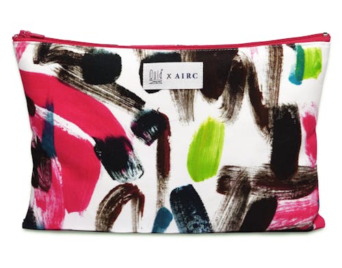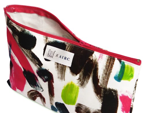 La pochette è realizzata in esclusiva per AIRC da QUID Cooperativa sociale. I prodotti realizzati da QUID prendono vita da eccedenze di tessuti attraverso un processo di recupero, design e produzione etico 100% Made in Italy ad alto impatto sociale, offrendo nuove opportunità di impiego, formazione e carriera per chi è più a rischio di emarginazione lavorativa.